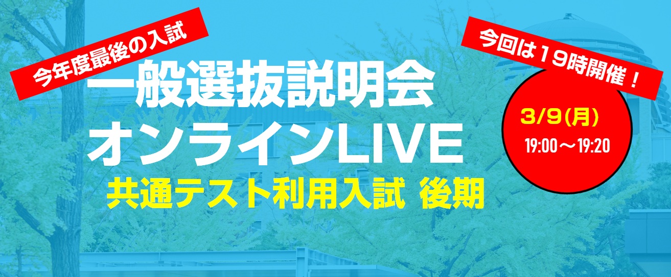 3月9日(月) 「共通テスト利用入試 後期 説明会オンラインLIVE」を開催します