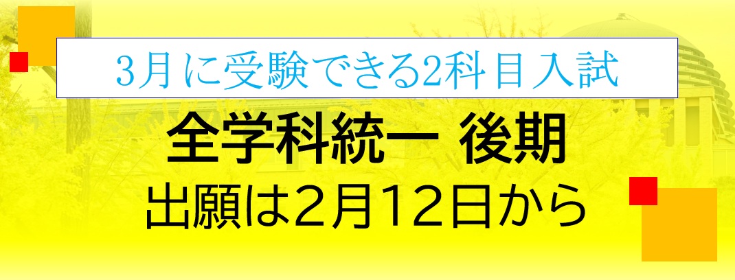 全学科統一後期【一般入試】 ~3月に受験できる一般入試~ 2/12(木)出願開始